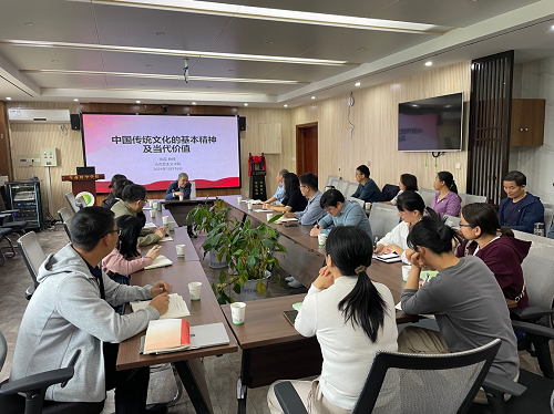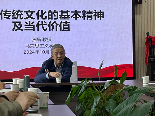 张磊教授以《中国传统文化的基本精神及当代价值》为题,深入浅出的为大家介绍了中国传统文化的发展脉络和基本精神,并将传统文化与习近平新时代中国特色社会主义思想有机融合起来。张磊教授强调,中国传统文化是中华民族五千年历史的积淀,是我们作为一个民族得以生存、发展和繁荣的精神基因。在习近平新时代中国特色社会主义思想的引领下,中国传统文化不仅得到了新的解读和发展,还为当代社会的建设与治理提供了重要的思想资源。